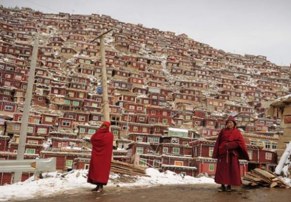 Deniz seviyesinden 12 bin 500 metre yükseklikteki Tibet özerk bölgesindeki Serthar Country`deki bu yerleşim alanında yaşayanların oluşturduğu nüfus yaklaşık 40 bin kişi...