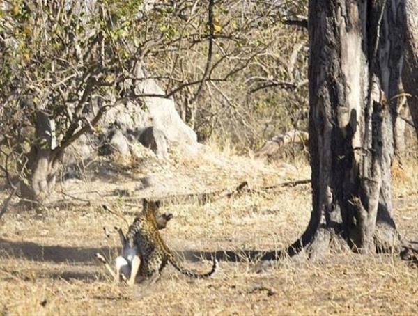 Vahşi leopar zar zor etkisiz hale getirildi.