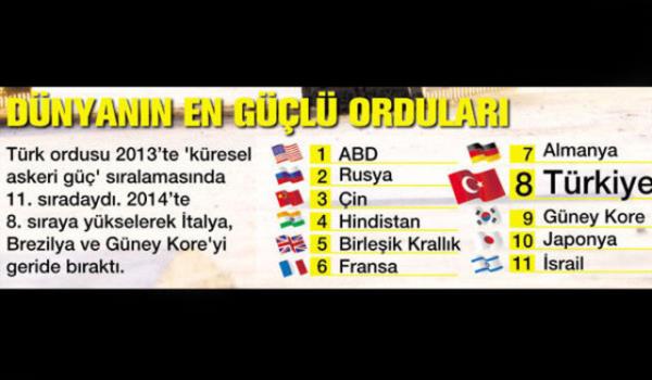 Türkiye, 'Küresel Askeri Güç' Sıralamasında 8. Sırada