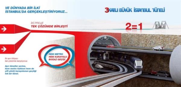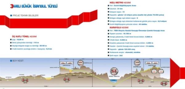 6 buçuk kilometre olacak 3 katlı tünel İstanbul'un 4. büyük projesi olacak. İstanbul'a herşey değer. 16 bin 150 metre uzunluğunda olan karayolu bir ucundan bir ucuna 14 dakikada gidilecek.