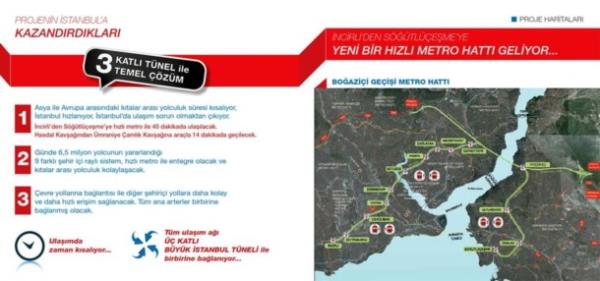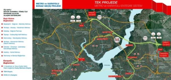İşte mega tünelBoğaziçi Köprüsü ile Fatih Sultan Mehmet Köprüsü arasına inşa edilecek projeyle; Boğaziçi Köprüsü’nün Anadolu Yakası’ndaki ayağı ile Fatih Sultan Mehmet Köprüsü’nün Avrupa yakasındaki ayağı trafiği arasında geçiş sağlanması amaçlanıyor.