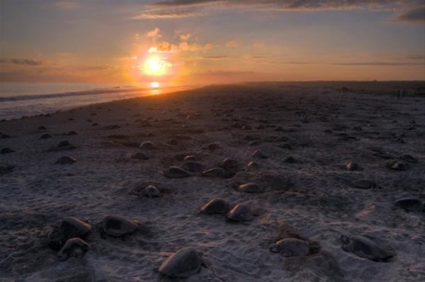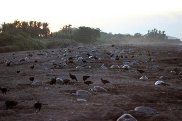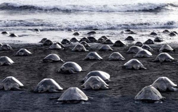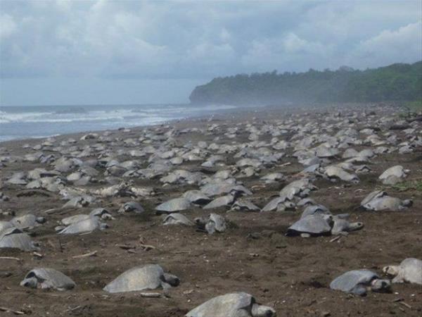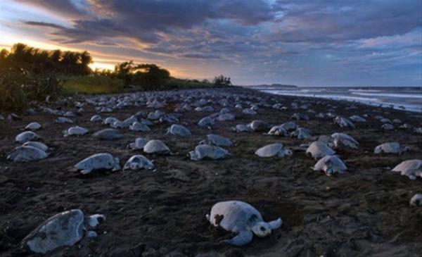 Binlerce deniz kaplumbağası doğal üreme bölgeleri olan Kosta Rika'nın batı kıyılarını istila etti.