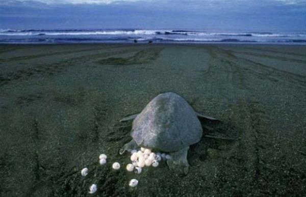 Deniz kaplumbağalarının en küçük türü olan nesli tükenme tehdidi altındaki Olive Ridley deniz kaplumbağaları, Kosta Rika'da plajlara yumurtalarını bırakıp, denize geri dönüyor.