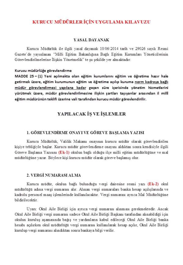 Kurucu Müdürler İçin Uygulama Kılavuzu