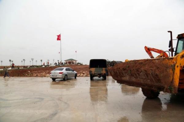 Suriye’nin Eşme bölgesinde inşa edilen Süleyman Şah türbesinin yeni alanındaki 2 kilometrelik beton yol, peyzaj, otopark, su ve kanalizasyon sistemleri ile çevre düzenlemesi gibi çalışmalar 10 gün gibi kısa sürede tamamlandı.