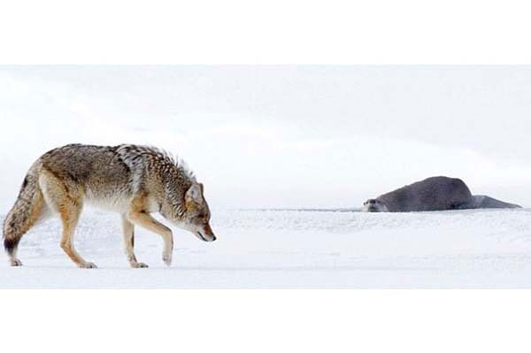 Aç kır kurdu avını önce kovalayarak yormasıyla ünlüdür ancak ABD'nin Wyoming eyaletinde bulunan Yellowstone Ulusal Parkı'ndaki bu avcı ağzını kocaman açan su samurunun gazabına uğradı.