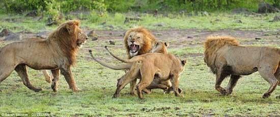 Aslana saldıran dişiler erkek aslanı kanlar içerisinde bıraktı.
