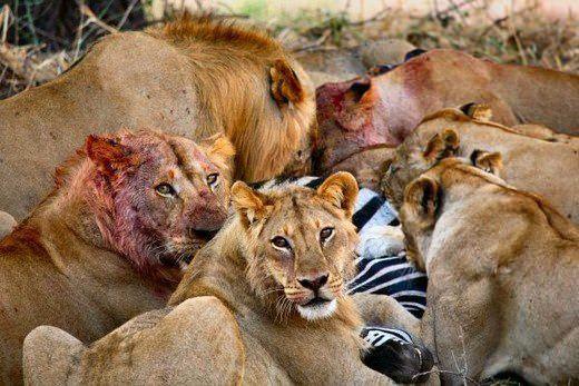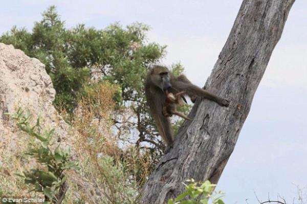Aslan öldürdüğü dişi babunun yavrusu olduğu fark edince olan oluyor