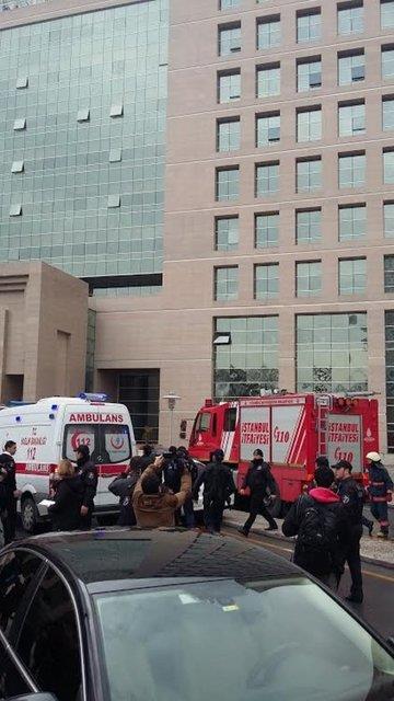 Adliye önünde, Olay Yeri İnceleme ve Çevik Kuvvet şube müdürlükleri ile itfaiye ve sağlık ekipleri de hazır bekletildi.