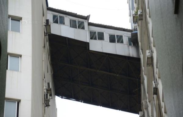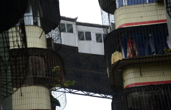 Burada yaşayan insanlar kendilerine daha fazla yaşam alanı yaratmak için 2 binanın arasına Çin tarzı balkon yaptılar...