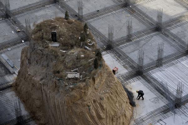 Çin'in Shanxi Eyaleti’ne bağlı Taiyuan’da, 10 metre yüksekliğinde ve 10 metrekare büyüklüğündeki bir mezar, yıkılamadığı için yapılan inşaatın ortasında kaldı.