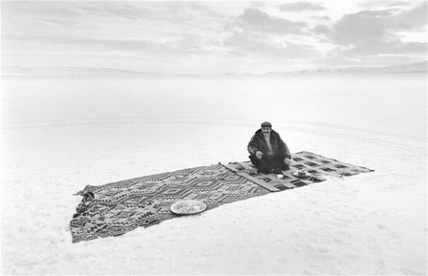 Dumanların içinden çıkan mistik bir doğu.. Çıldır Gölü’nün üstü buz tutmuş, yerle gök birleşmiş. Kamil Fırat’ın bu siyah beyaz karesi doğuyla ilgili çok şey anlatıyor. -