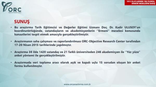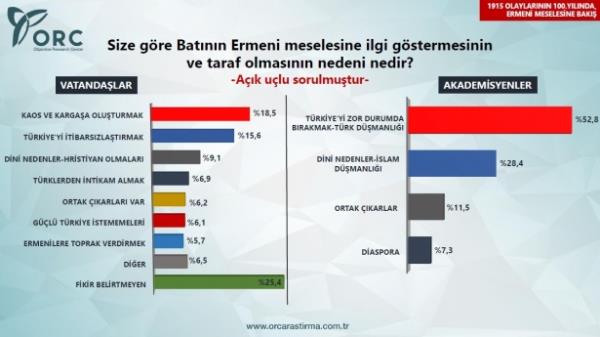 ORC araştırma şirketi, vatandaş ve akademisyenlere Ermeni meselesi hakkında önemli sorular sordu. Çarpıcı sonuçlar ortaya çıktı.