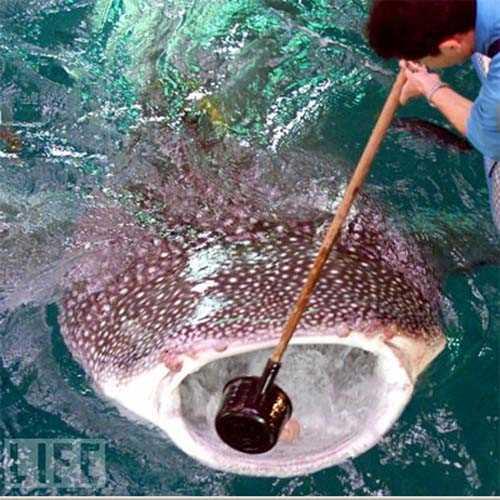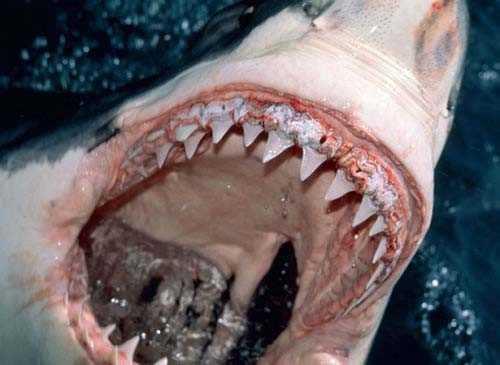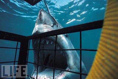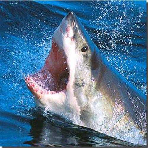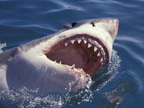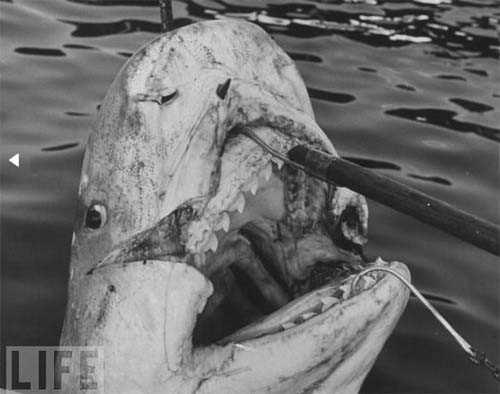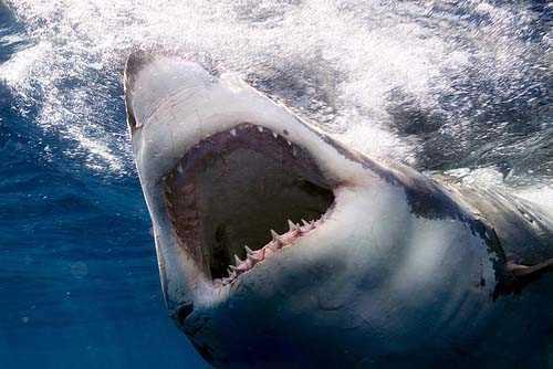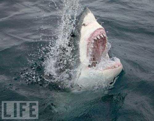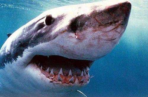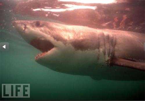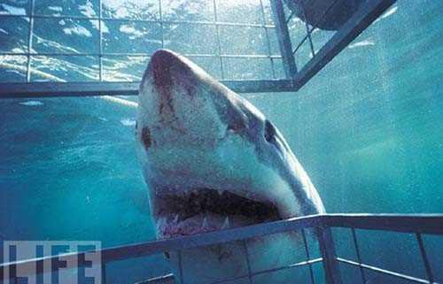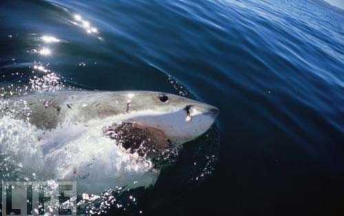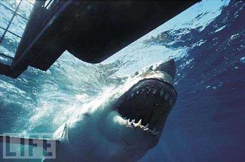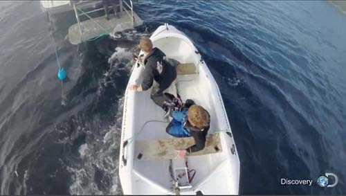 Büyük beyaz bir köpek balığı az daha tekneyi parçalıyordu.
