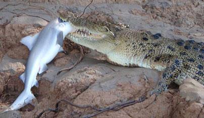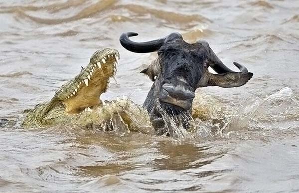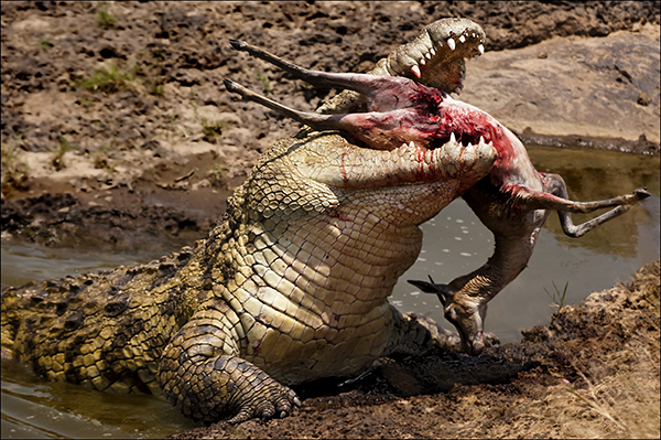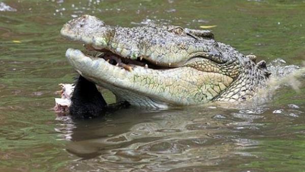 Timsah avını sessizce takim altına alırken, her an bir hamle yapacak gibi görünüyor.