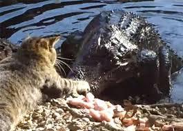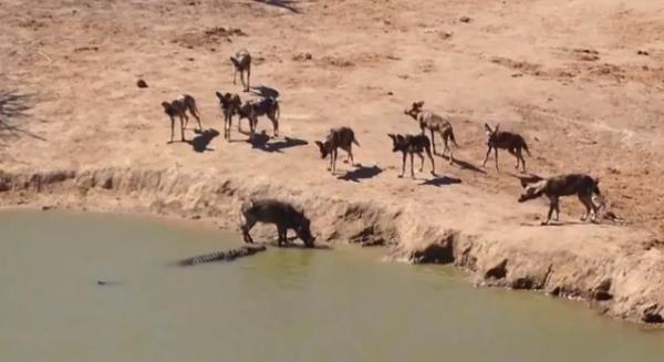 Gölde gizlenen timsah, sinsice çıkıp olaydan habersiz vaşağı izlemeye başlıyor.
