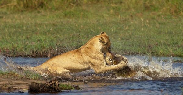 Timsahımız yeşil çimenlerin üzerinde aç bir şekilde ortada kalıyor. Bu doğa oyununu hızıyla vaşak kazanıyor.
