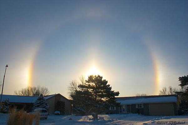 "Sun dog"ı, şartlar oluştuğunda, güneşin 22 derecelik açıyla her iki tarafında da görmek mümkün...