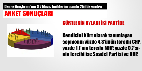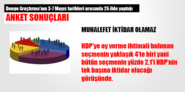 Denge Araştırma'nın kendi kaynakları ile Adana, Ankara, Antalya, Aydın,Balıkesir, Bursa, Diyarbakır, Erzurum, Gaziantep, Giresun, Hatay, İstanbul, İzmir, Kayseri, Kırıkkale, Kocaeli, Konya, Malatya, Manisa, Mardin, Samsun,Tekirdağ, Trabzon, Van ve Zonguldak illerinde yaptığı ''Türkiye Gündemi Kamuoyu Araştırması'' halkın siyasete ve siyasilere bakışını ortaya koydu. -