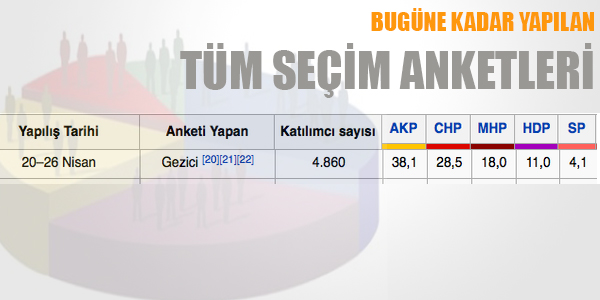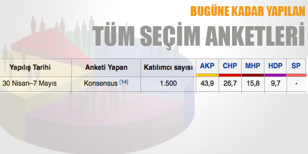 7 Haziran öncesi yapılan tüm anket sonuçlarını