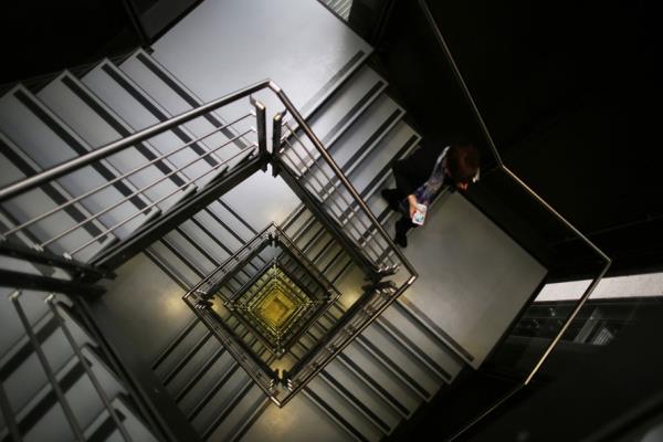 Yer altına inen merdivenlere akan su yüzünden aşağı inmekte zorlanan bir insan.