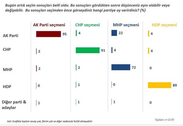 Seçimden bir gün sonra 8 Haziran 2015'te bilgisayar destekli telefon görüşmesi yöntemiyle yapılan araştırma, 81 ilde 18 yaş üzeri 1570 kişiyle gerçekleştirildi. Şirkete göre hata payı ise yüzde 2.5.