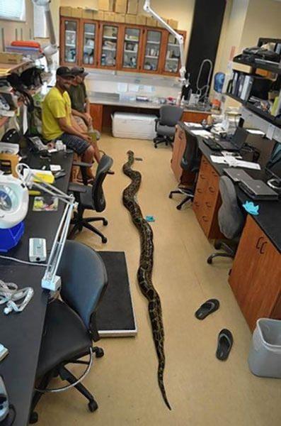 Yaklaşık 6 metre uzunluğunda ve 60 kilo ağırlığındaki dev sürüngenin Florida’da bulunan en büyük piton olduğu düşünülüyor. Hill’in etkisiz hale getirdiği dev yaratık, incelenmek ve ölçümleri yapılmak üzere Florida Üniversitesi’ne gönderilecek.