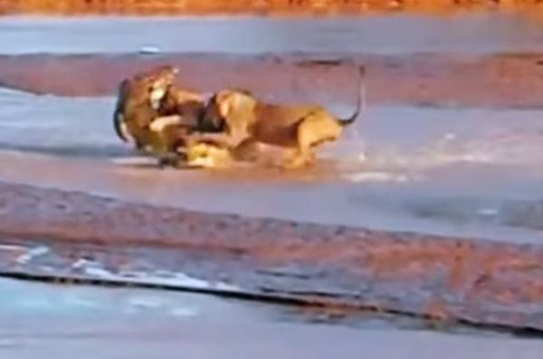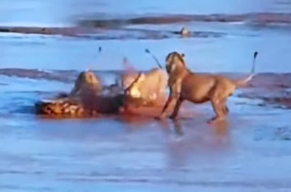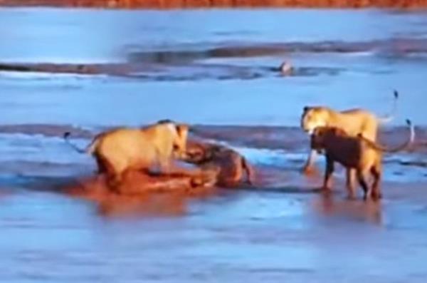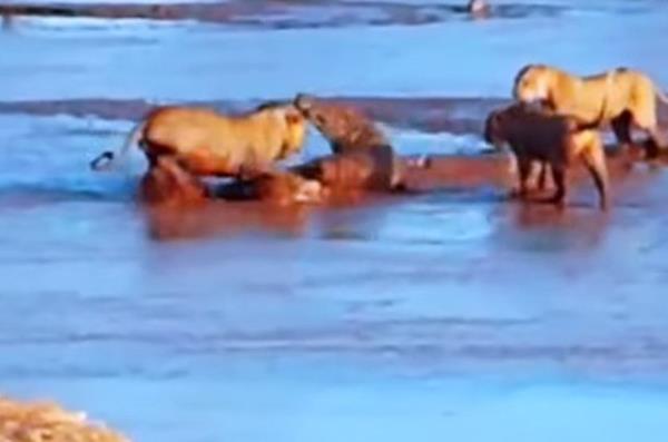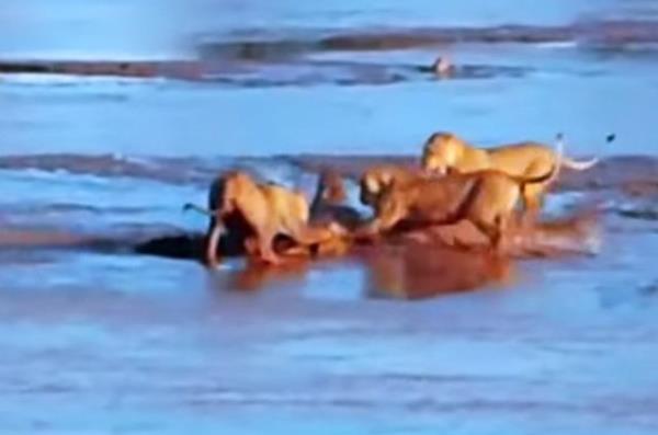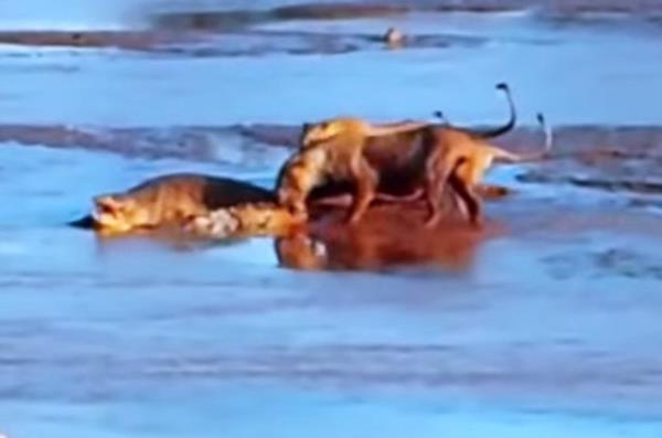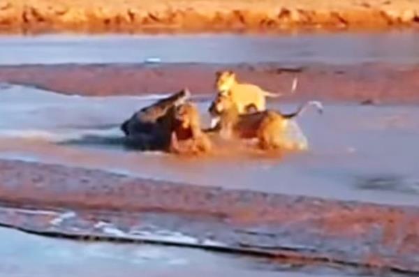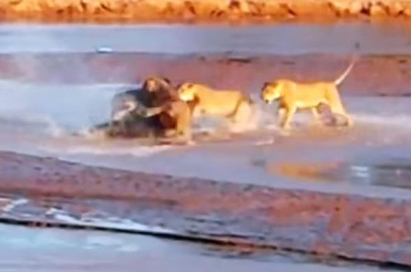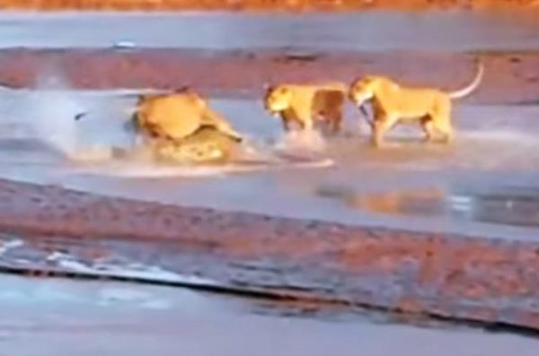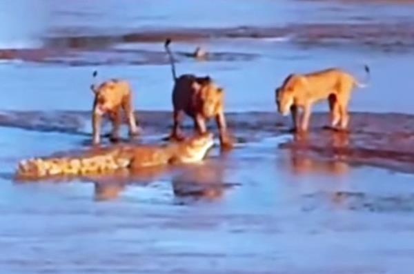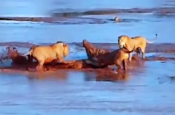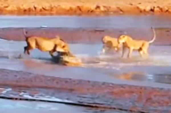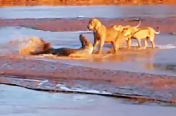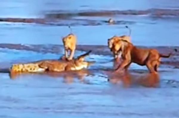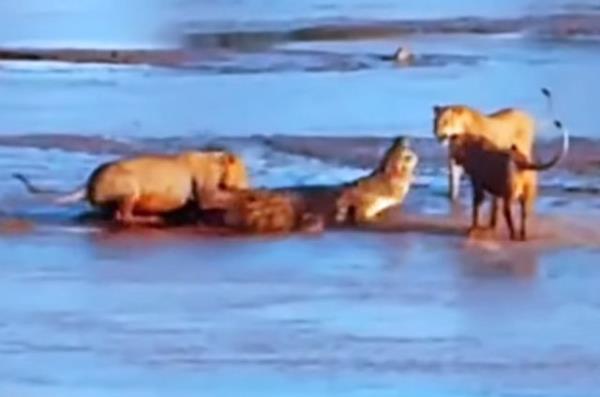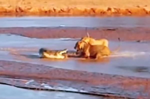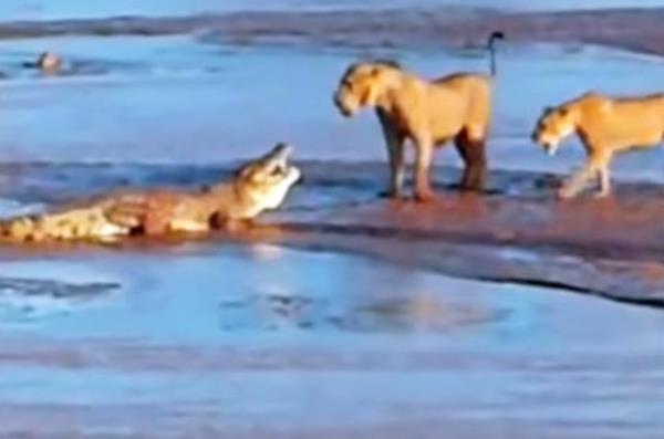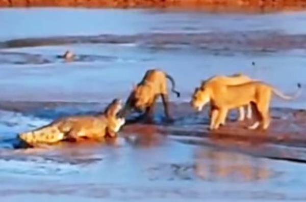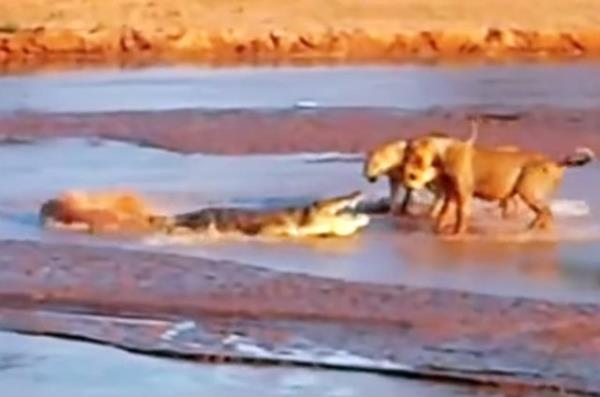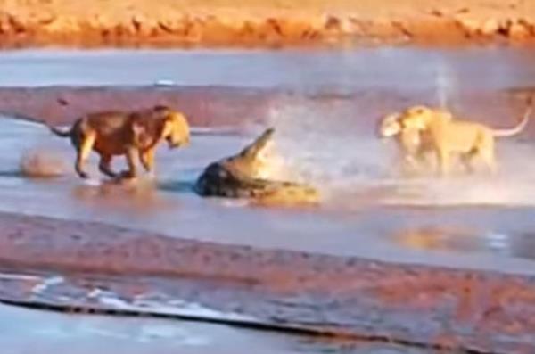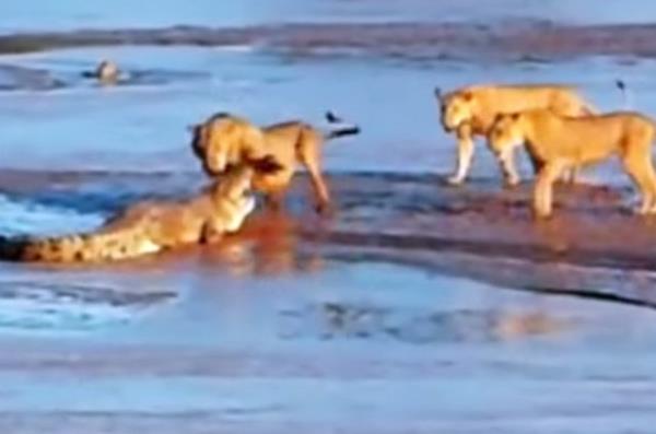 Vahşi doğada kralların savaşı. 3 aslan 1 timsaha saldırdı. İki taraftan biri pes etti. 2 raund süren savaşın sonucunda şok olabilirsiniz!