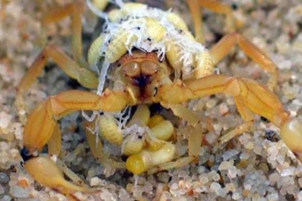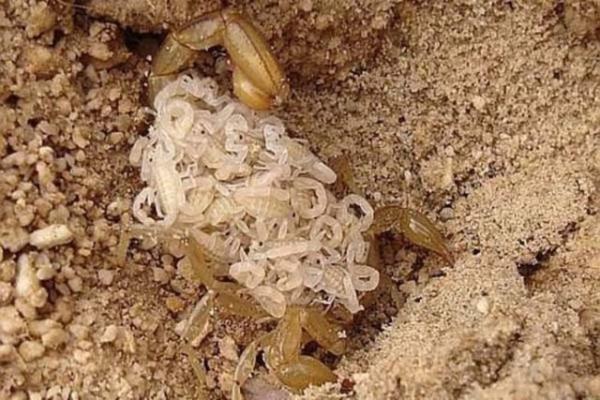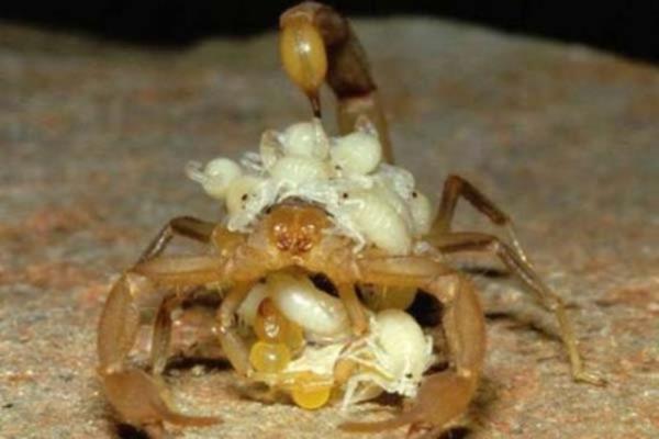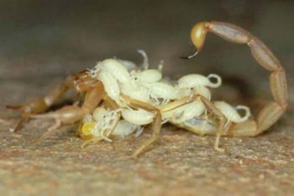 Akrep yavrusu doğumdan sonra bir süre annenin sırtında taşınır...