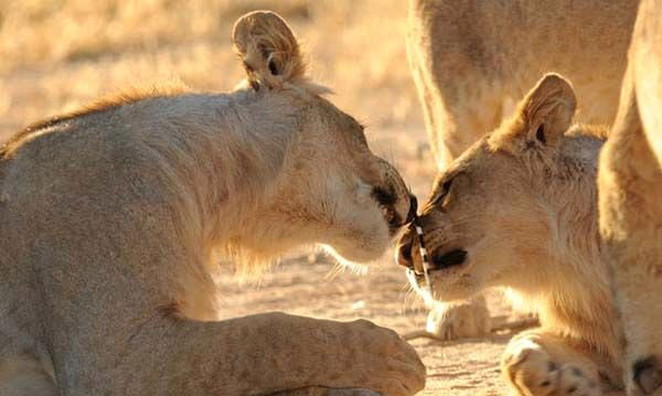 Tek bir yavru aslan kirpiye yaklaşmaya çalışınca olan oldu ve kirpi dikeniyle acı bir tecrübe sonucu tanışmış oldu.