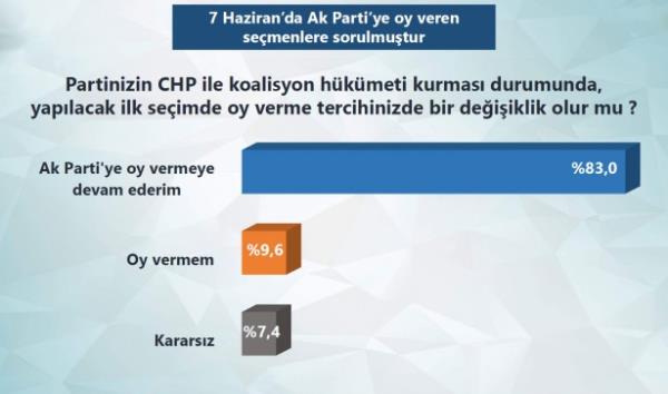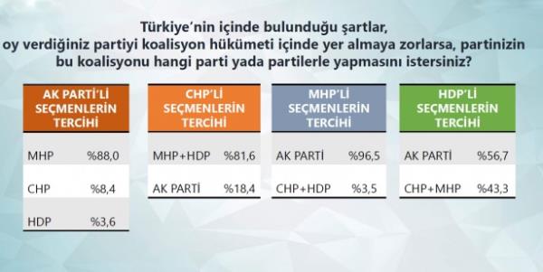 Ankette partilerin hangi partiyle koalisyon yapmaları gerektiği ve bunun oy tercihlerine yansıyıp yansımadığı da soruldu.