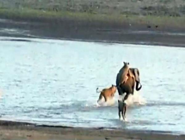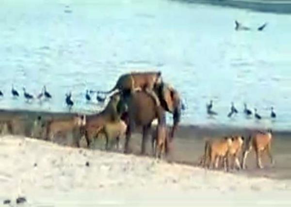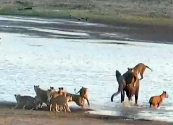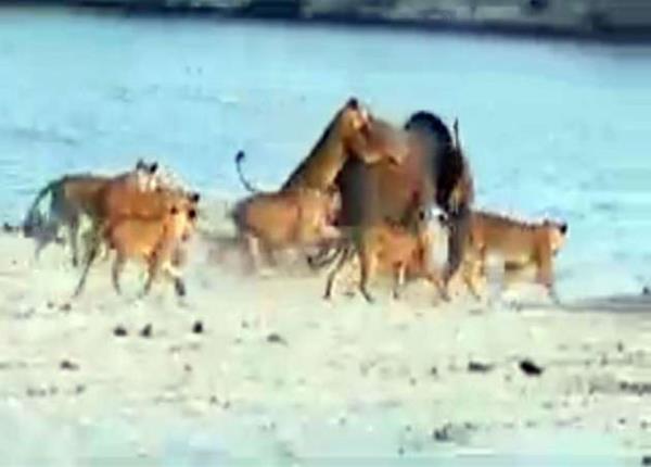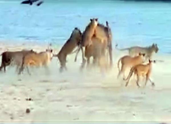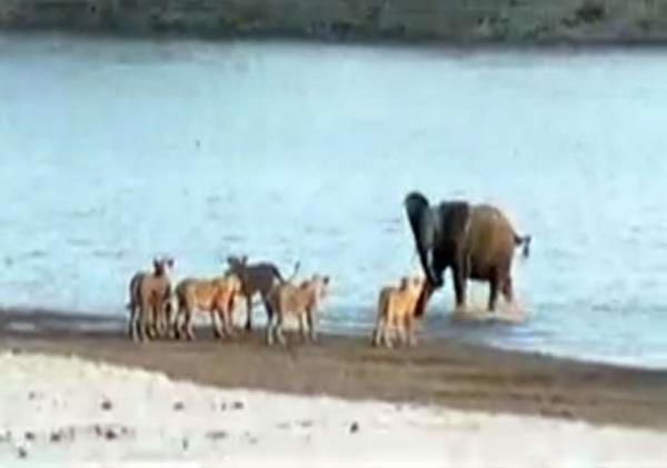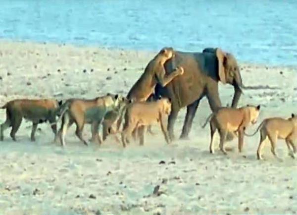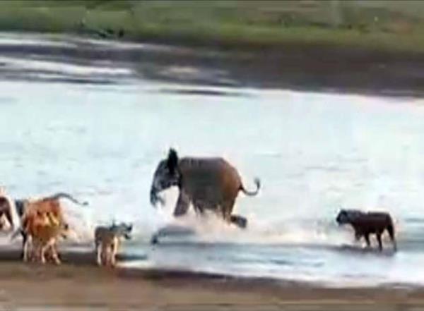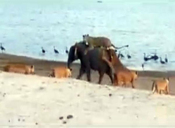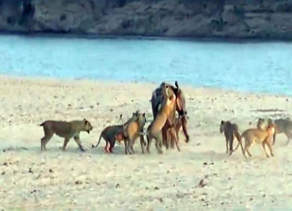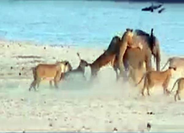 Genç fil kendisine saldıran 14 aslanla amansız bir mücadeleye girişiyor.