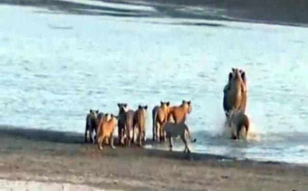 Mücadelenin sonunda aslanlardan kurtulmayı başarıyor.