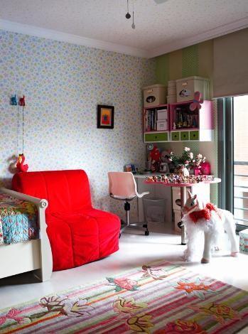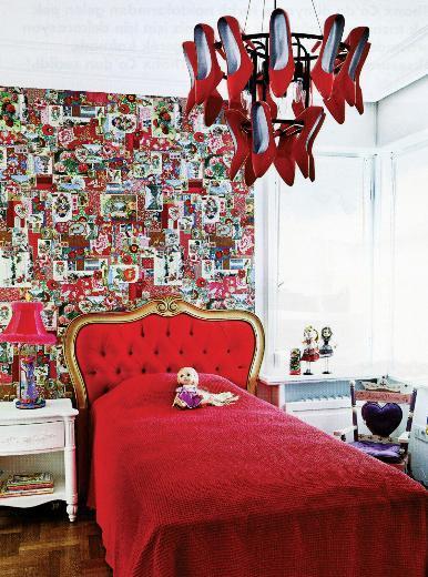 Çiçek şeklindeki gömme raflar da odaya farklı ve modern bir hava katıyor...