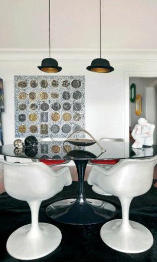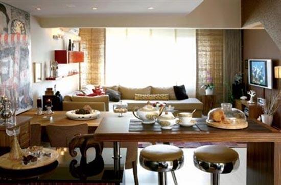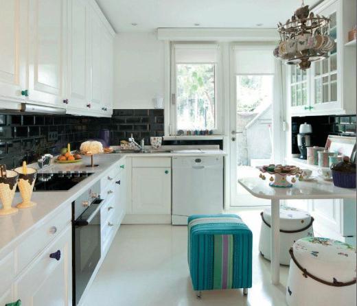220 m2’lik daire, bir salon, mutfak, iki giyinme, bir yatak odası ve bir banyodan oluşuyor. Dekorasyonu kendisi yapmış. Evin genelinde hakim renk beyaz.