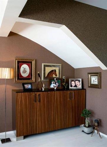 Buraya geldiğimde duvarların rengini ve ahşap parkelerini çok beğenmiştim zaten” diyor. Kendi tasarladığı kıyafetler için iki giyinme odası, ayakkabıları için de pratik kullanımlı dolaplar ekletmiş sadece.