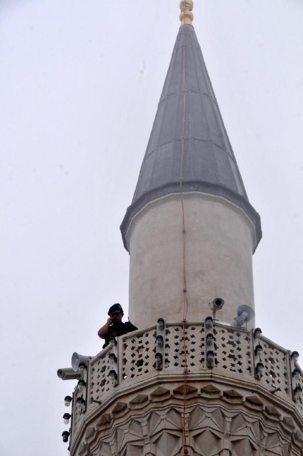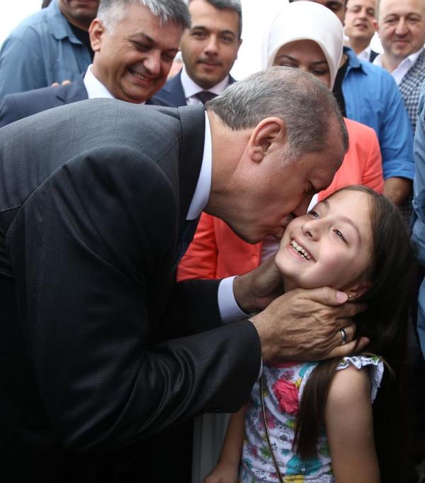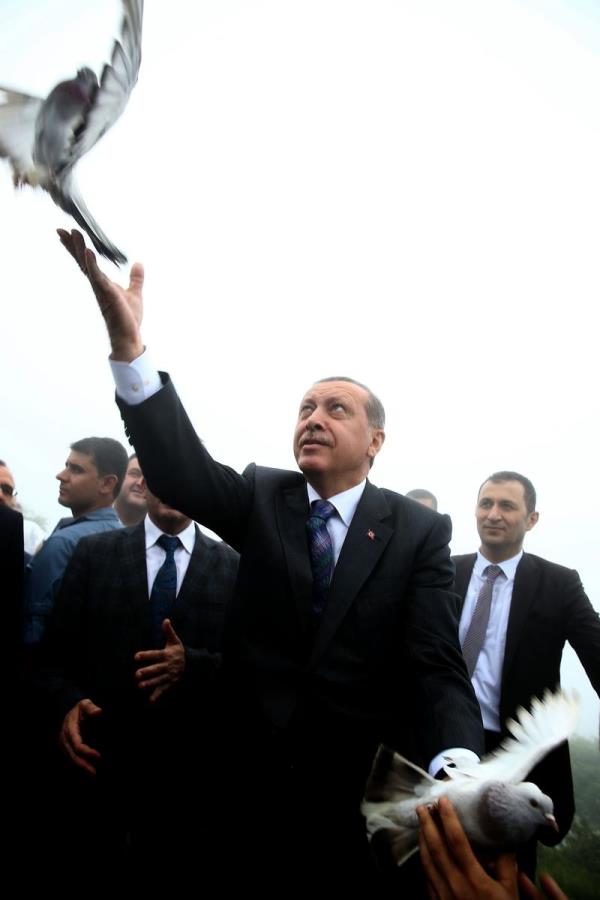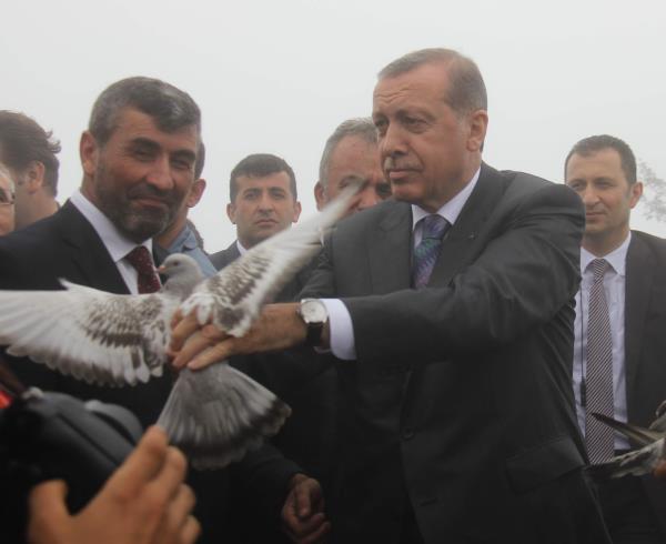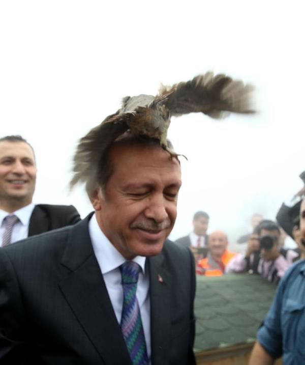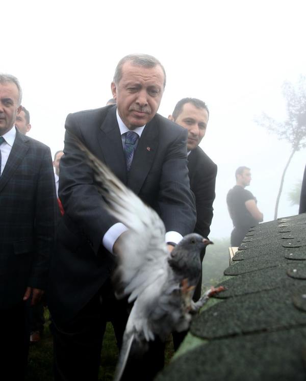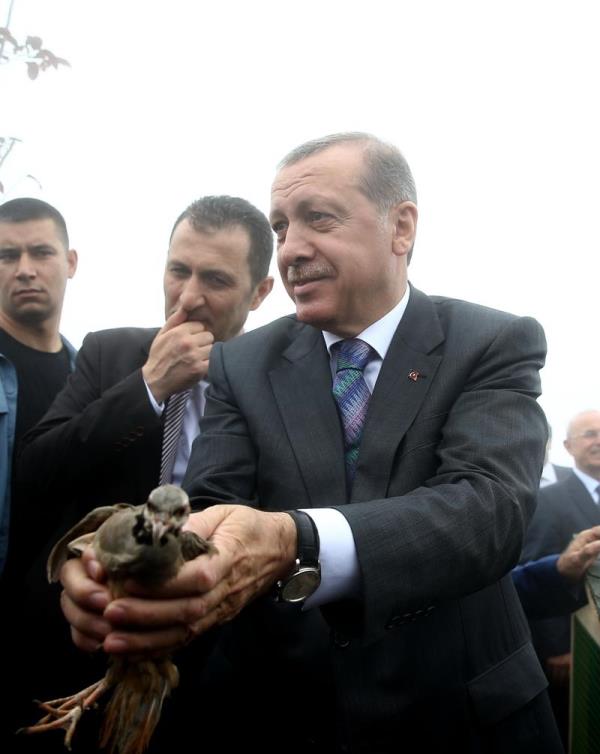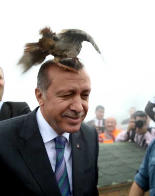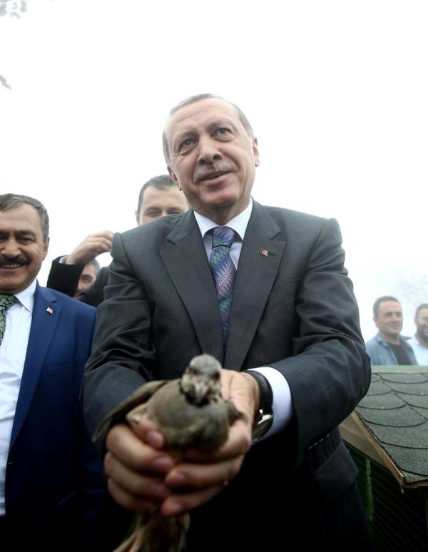 Rize Güneysu'da Kıbledağı Camisi'nin açılışına katılan Cumhurbaşkanı Erdoğan'ın başına keklik kondu.