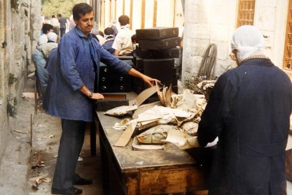 Fotoğraflarda, Osmanlı Devleti'nin yıkılmasından sonra farklı binalarda ve depolarda tutulan kıymetli evrak ve belgelerin, 1980'e kadar adeta kaderine terk edildiği görülüyor.