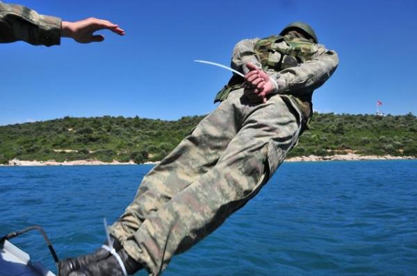 Korkusuzca helikopterden atlayıp, el, ayak ve gözleri bağlı halde denize atılan, tüm kısıtlamalar rağmen hayatta kalmayı başaran gözü kara komando adaylarının yanı sıra bu ve benzeri kurslara, 16 ülkeden de subay ve astsubaylar katılıyor.