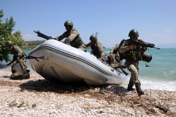Eğitimlerinin tamamlamasının ardından gerçekleştirilen tatbikat, komandoların, düşman muharebe merkezini yok etmek için belirlenen hedefe botlarla düzenlenen kıyı çıkarma harekatıyla başladı.