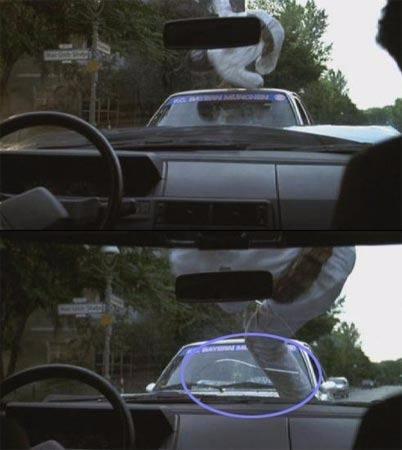 Ön camdaki balyoz darbesi dışardan bakıldığında ortada içerden bakıldığında solda gözüküyor.