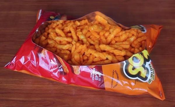 Öncelikle aldığınız cips paketini düz bir zeminin üzerine koyun.