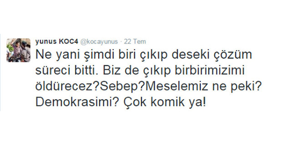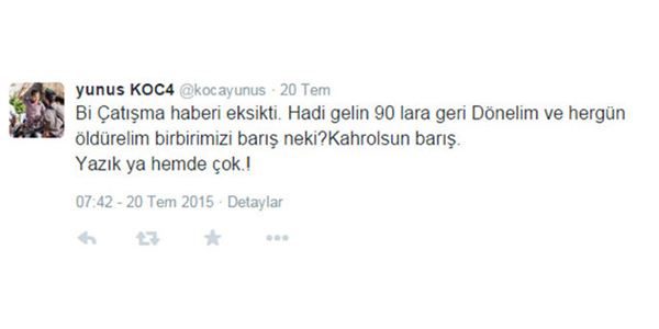 Yunus Koca'nın barış çağrısı yaptığı öksüz kalan o tweetleri...