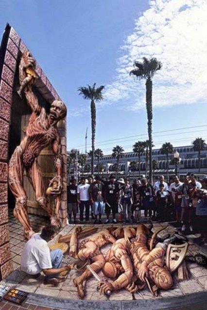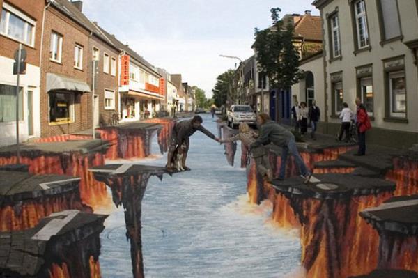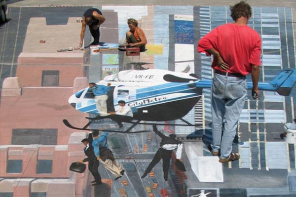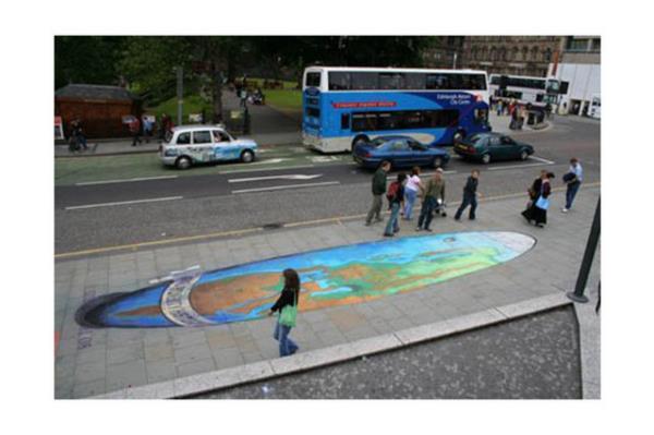 Caddelere tebeşirle resim yapmak özellikle Avrupa'da çok popüler bir hale geldi. Kaldırım boyama sanatı denilen bu tarz çalışmalar hem görenlerin hem ilgisini çekiyor hem de şaşırtıyor
