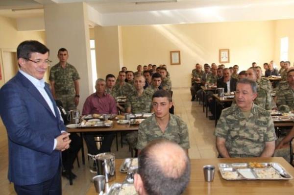 Başbakan Davutoğlu, Bayramın 1'inci günü incelemelerde bulunup, mehmetçiklerle birlikte karavana yemişti.