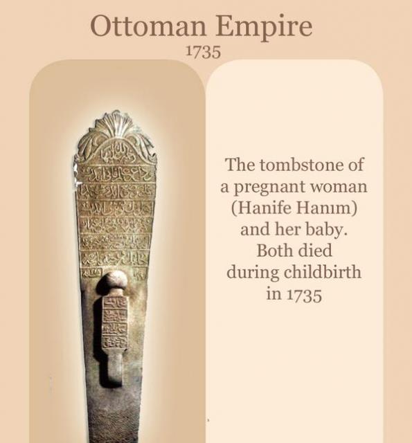 Bir hamile kadın ve onun bebeğinin mezar taşı, 1735
