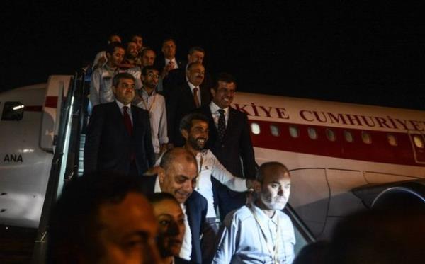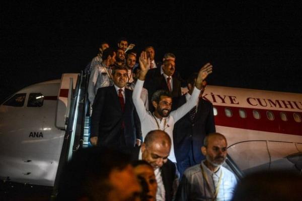 Serbest bırakılan 16 türk işçi Türkiye'ye geldi