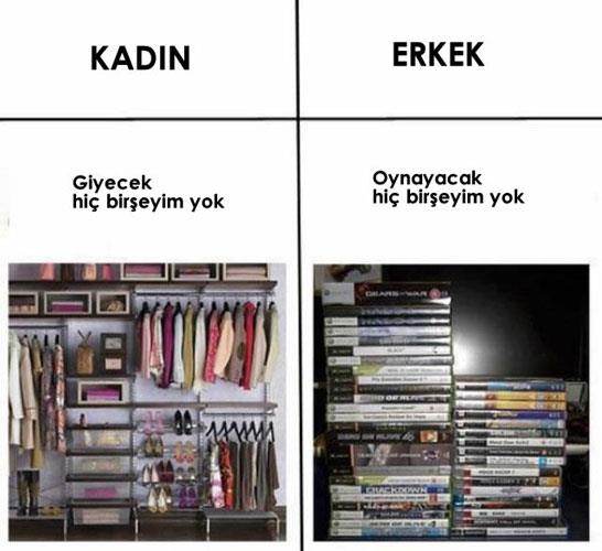 Daha beşikten itibaren, kızların erkeklerden çok daha fazla sayıda giysisi oluyor. 17-24 yaşları arasında kızların gardrobunda fazladan yaklaşık 44 parça oluyor. Ama bu fark zamanla azalıyor, erkekler yaşlandıkça kılık kıyafete çok daha düşkün oluyorlar. 75 yaşına geldiğinde ise hiç fark kalmıyor erkeklerle kadınların gardrobu arasında.