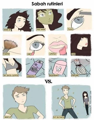 Erkek bebeklerin ilk aylarda, kız bebeklerden daha çok uykuya ihtiyacı oluyor.ama altı aydan sonra işler tersine dönüyor ve hayatın geri kalan kısmında kadınlar erkkelerden ortalama günde bir saat daha fazla uykuya ihtiyaç duyuyorlar. Yani sabah keyifleriniz sizin en doğal hakkınız, huzur içinde uyuyabilirsiniz.