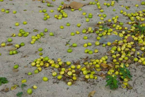 Yanan bir Manchineel ağacının dumanı göze temas ederse, körlüğe bile sebep olabilmektedir...